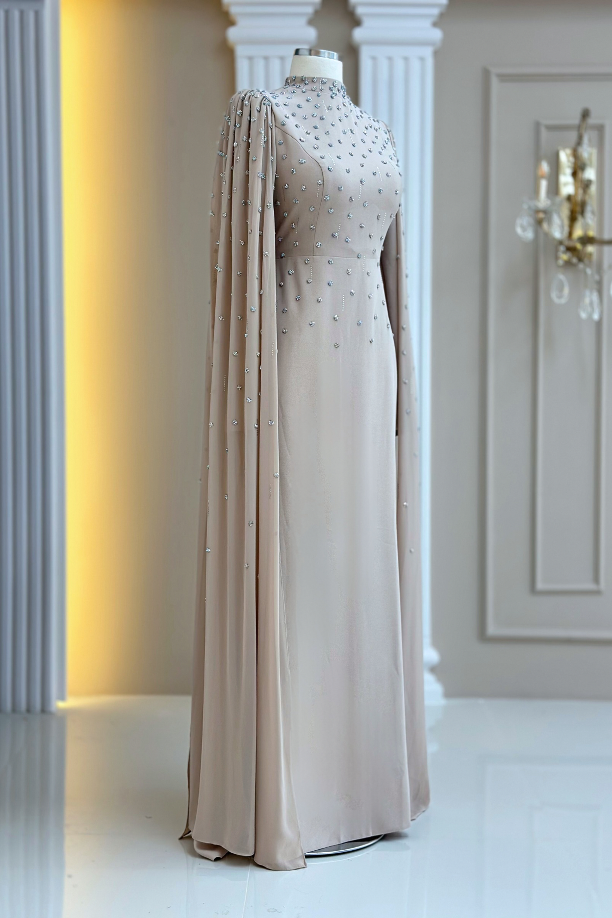 Ürün Suzanna Kumaştan Üretilmiştir. Tam Kalıptır. Tam Beden Almanız Önerilir. Esnek Değildir. Elbise Boyu 150 Cm’dir. Astarlıdır. İç Göstermez. Arkadan Fermuarlıdır. Dört Mevsim Kullanıma Uygundur. Ürün Renginde Çekimlerde Işık Kaynaklı Küçük Ton Farklılığı Olabilir.