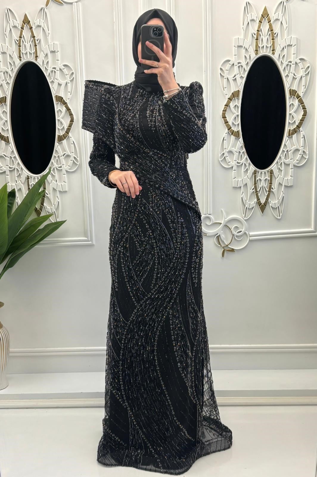'tesetturhome.com' sitesinde yer alan Ahu abiyemiz zarafeti ve modern tasarımı mükemmel bir şekilde birleştiriyor. Tüm yüzeyini kaplayan pırlanta benzeri parlak detaylar, elbiseye hareketli ve lüks bir hava katarken; asimetrik ve geniş omuz detayı klasik siyah elbiselerden sıyrılmanızı sağlıyor. Uzun kollu, yüksek yaka ve vücudu saran kesimiyle hem şık hem de iddialı bir silüet oluşturuyor. Dökümlü kumaşı ise yürürken veya dönerken zarif bir akıcılık sağlıyor. Özel günlerinizde dikkat çekmek ve kendinizi özel hissetmek için ideal bir seçim.