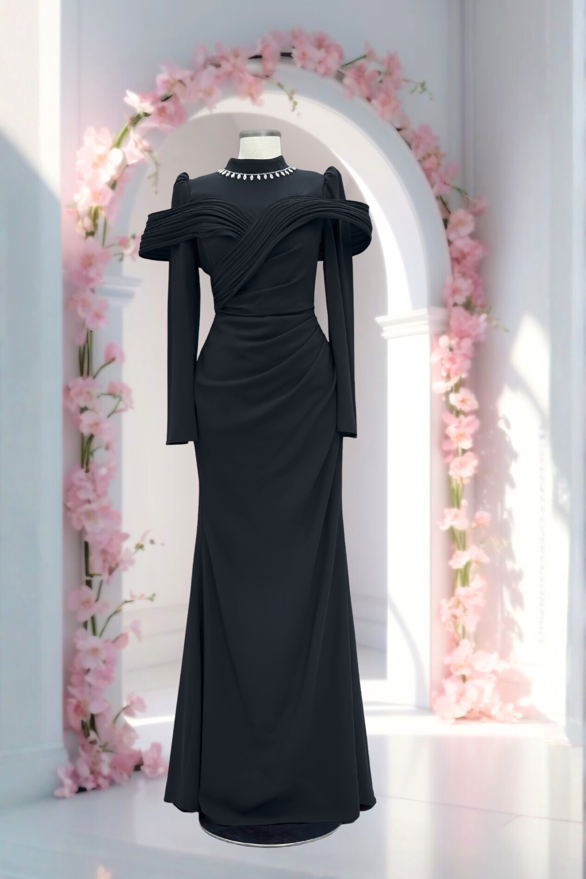 Amine Hüma Dila Abiye Elbise Siyah