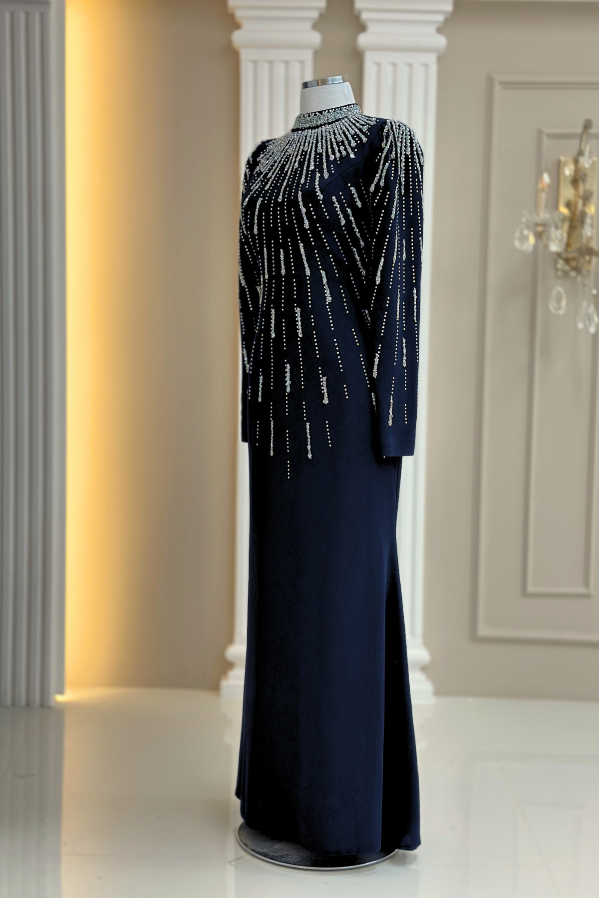 Ürün Krep Kumaştan Üretilmiştir. Dar Kalıptır. Esnek Değildir.  Elbise Boyu 150 Cm’dir. Astarlıdır. İç Göstermez. Arkadan Fermuarlıdır. Dört Mevsim Kullanıma Uygundur. Ürün Renginde Çekimlerde Işık Kaynaklı Küçük Ton Farklılığı Olabilir.