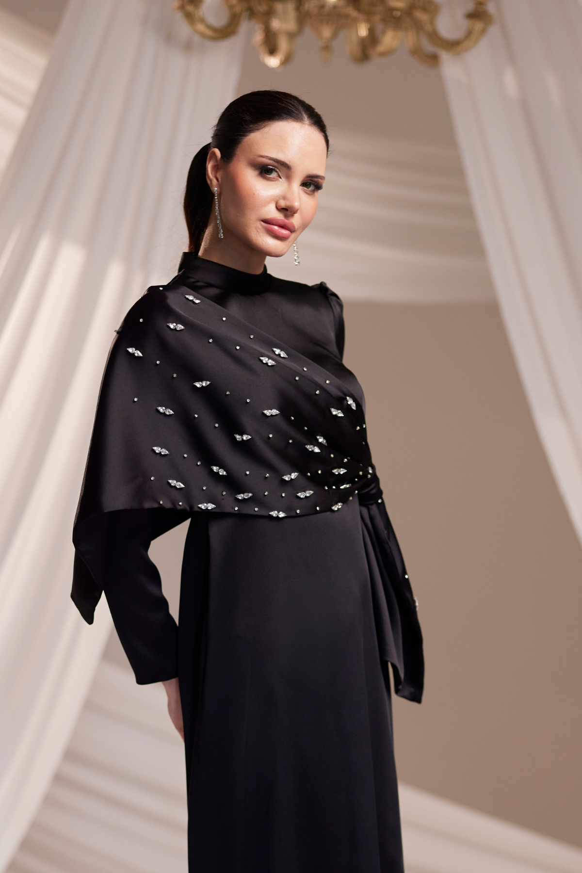 Tesetturhome.com'da yer alan Bade Tesettür siyah abiye, zarif detayları ve şık tasarımıyla dikkat çekiyor. Bu abiye, özel günlerinizde ve davetlerde şıklığınızı ön plana çıkaracak. Siyah rengiyle klasik ve şık bir görünüm sunarken, detaylı dantel işlemeleri ve zarif kesimiyle de göz alıcı bir duruş sergiler. Uzun kollu ve uzun etekli tasarımıyla tesettürlü hanımların tercihi olan bu abiye, her detayıyla özenle tasarlanmıştır. Tesetturhome.com'un zengin abiye koleksiyonunda yer alan bu ürün, sizi özel kılacak detaylarıyla dikkat çekiyor. Kaliteli kumaşı ve şık duruşuyla Bade Tesettür siyah abiye, tesettür giyimde şıklığı ve zarafeti bir arada arayanların tercihi olacak.