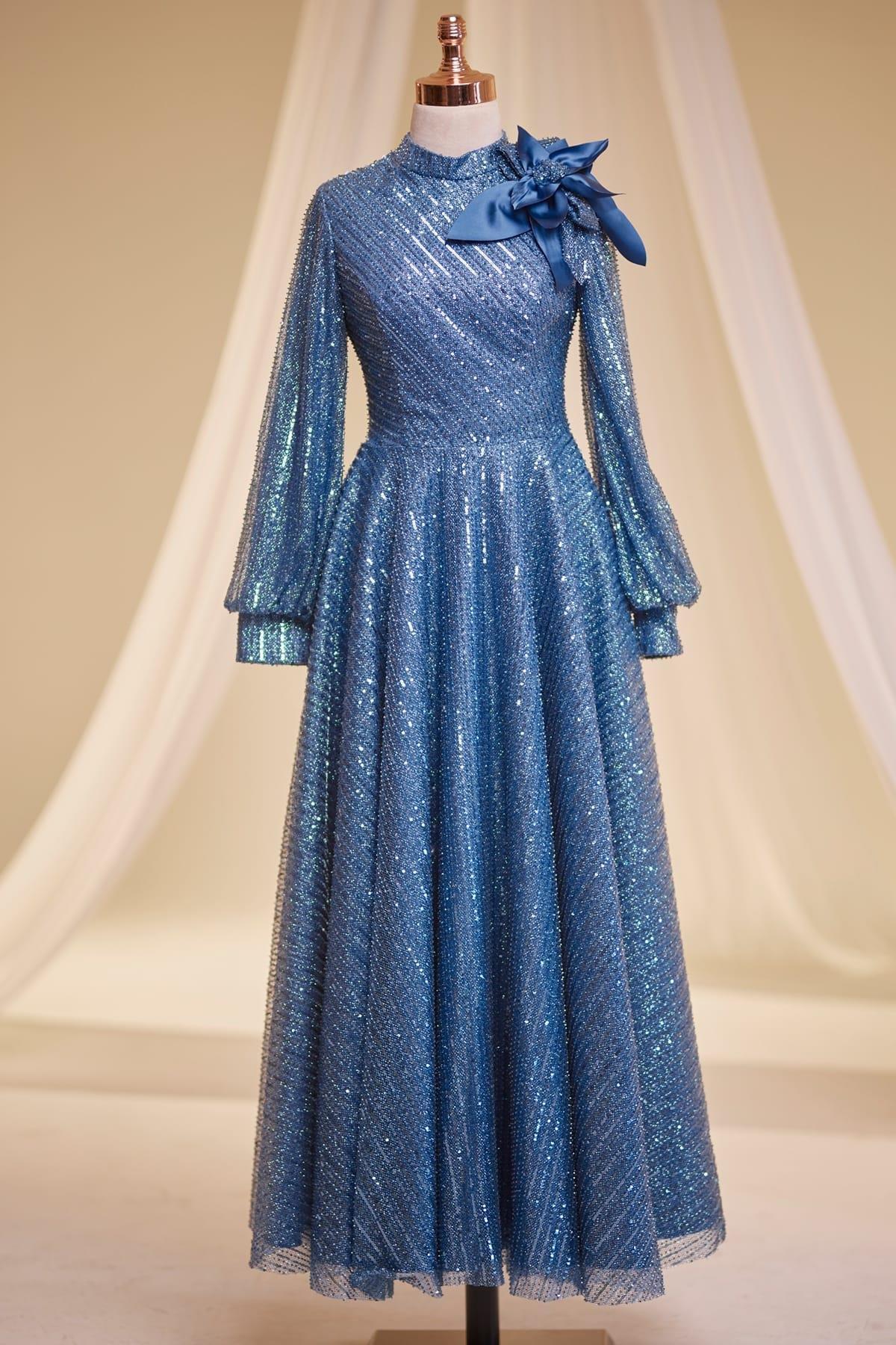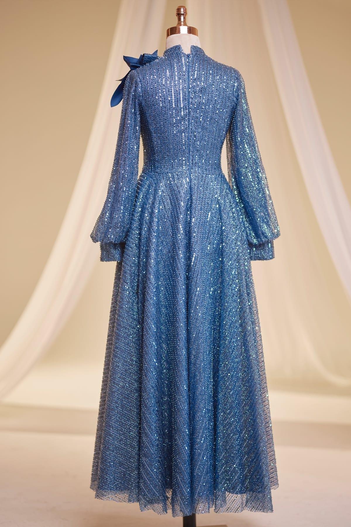 Bukle Tesettür Abiye İndigo