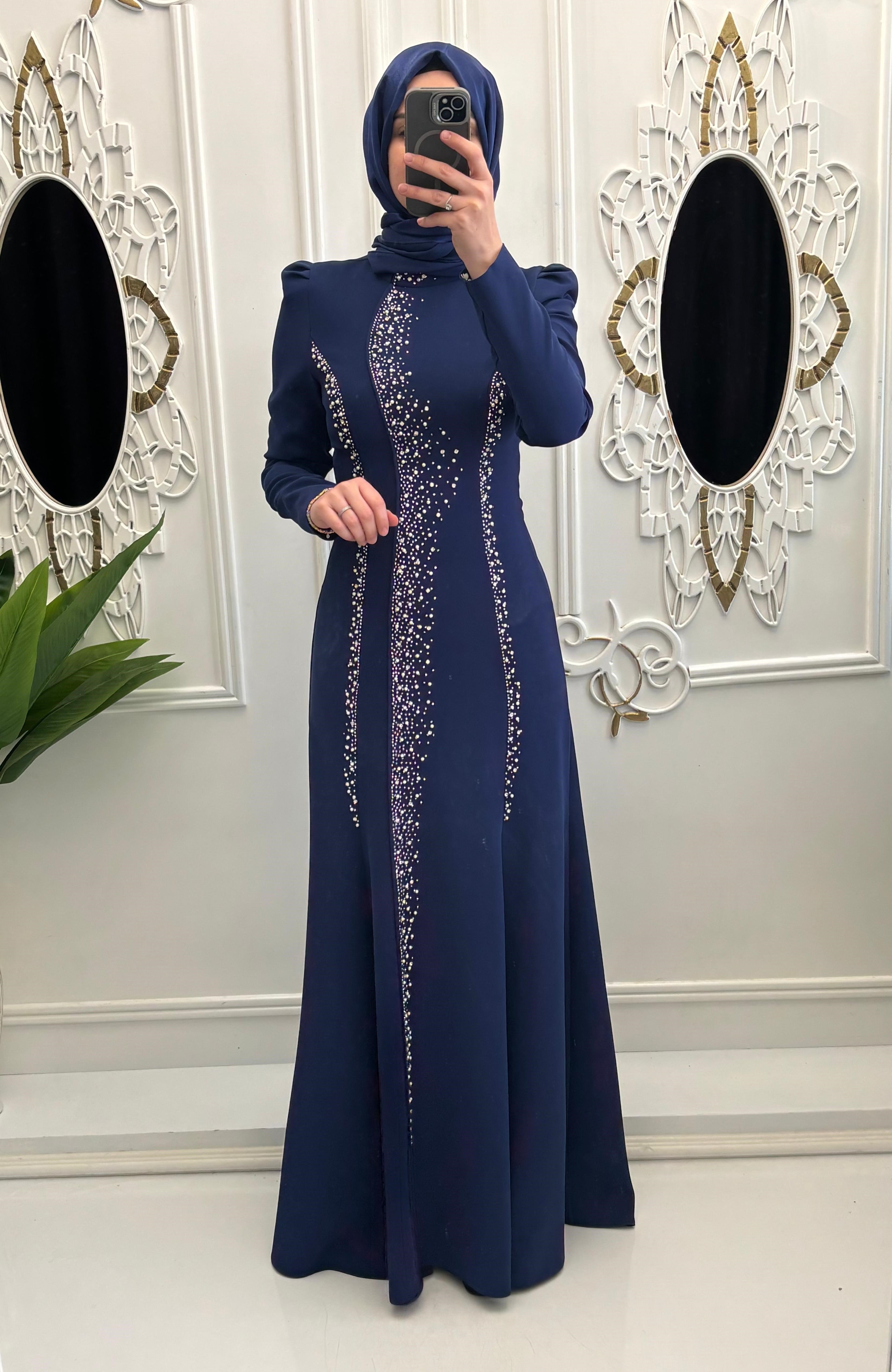 Tesettürhome.com'un yeni koleksiyonundaki elbise, ön kısımda dikey olarak dizilmiş ışıltılı taş veya boncuk detaylarıyla zenginleştirilmiş bir tasarıma sahiptir. Alt kısmı ise sade ve akıcı bir şekilde tasarlanmıştır. Bu elbise, zarif ve şık bir görünüm isteyenler için ideal bir seçenektir. Özel günlerde ve davetlerde rahatlıkla tercih edilebilecek olan bu elbise, Tesettürhome.com'un kaliteli ve modern tasarımları arasında yer almaktadır. Detaylı inceleme ve satın alma için sitemizi ziyaret edebilirsiniz.