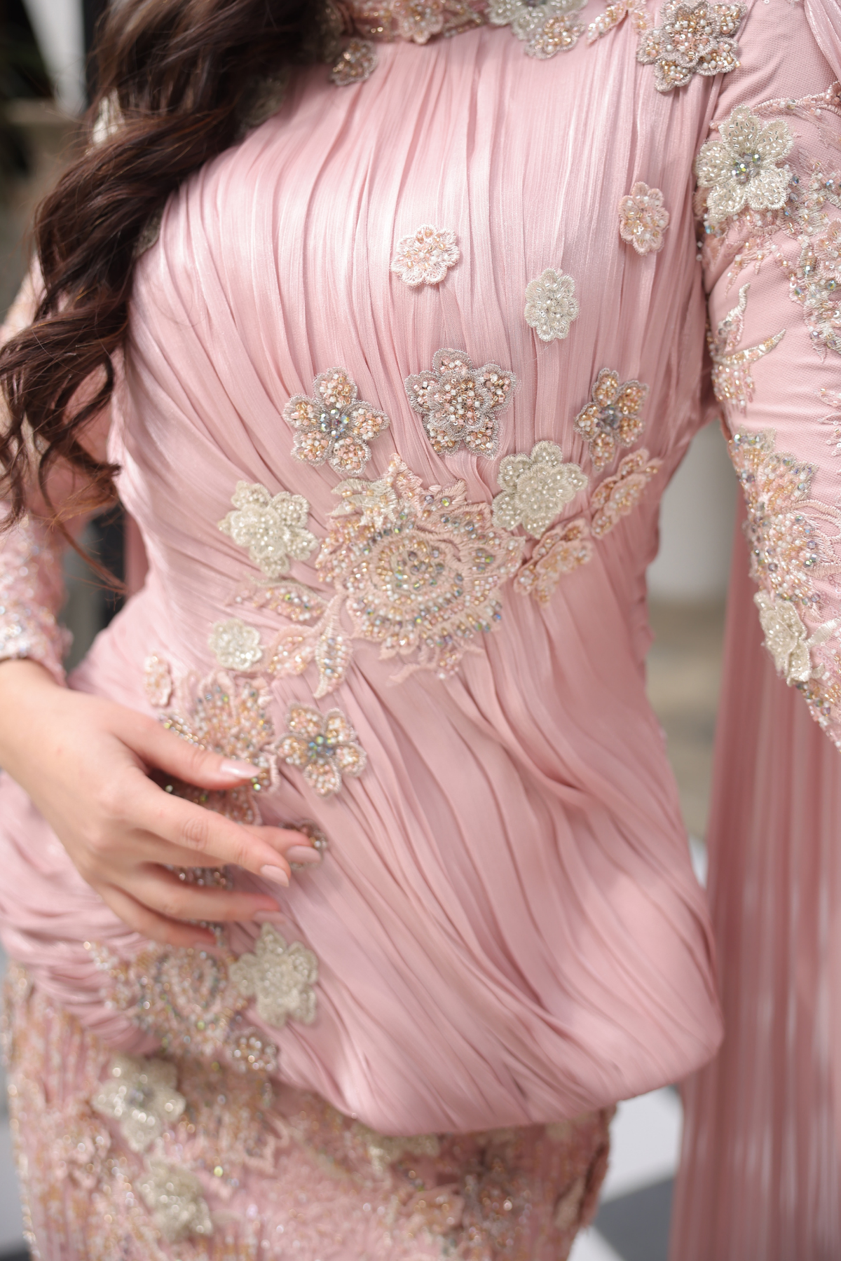 • E-ticaret sitemizde bulunan siyah zemin üzerine gümüş ve pastel tonlu çiçek nakışları ve boncuk işlemeleriyle bezeli elbise, zarif ve şık bir tasarıma sahiptir. Dik yakalı ve belden dökümlü peplum üst detayıyla modern bir görünüm sunarken, omuzlardan yere kadar uzanan şifon pelerin kollarıyla da göz alıcı bir hava katmaktadır. Bu elbise, özel davetlerde, düğünlerde veya özel günlerde şıklığınızı tamamlamak için ideal bir seçenektir. Daha fazla detay ve benzer ürünler için 'tesetturhome.com' adresini ziyaret edebilirsiniz.