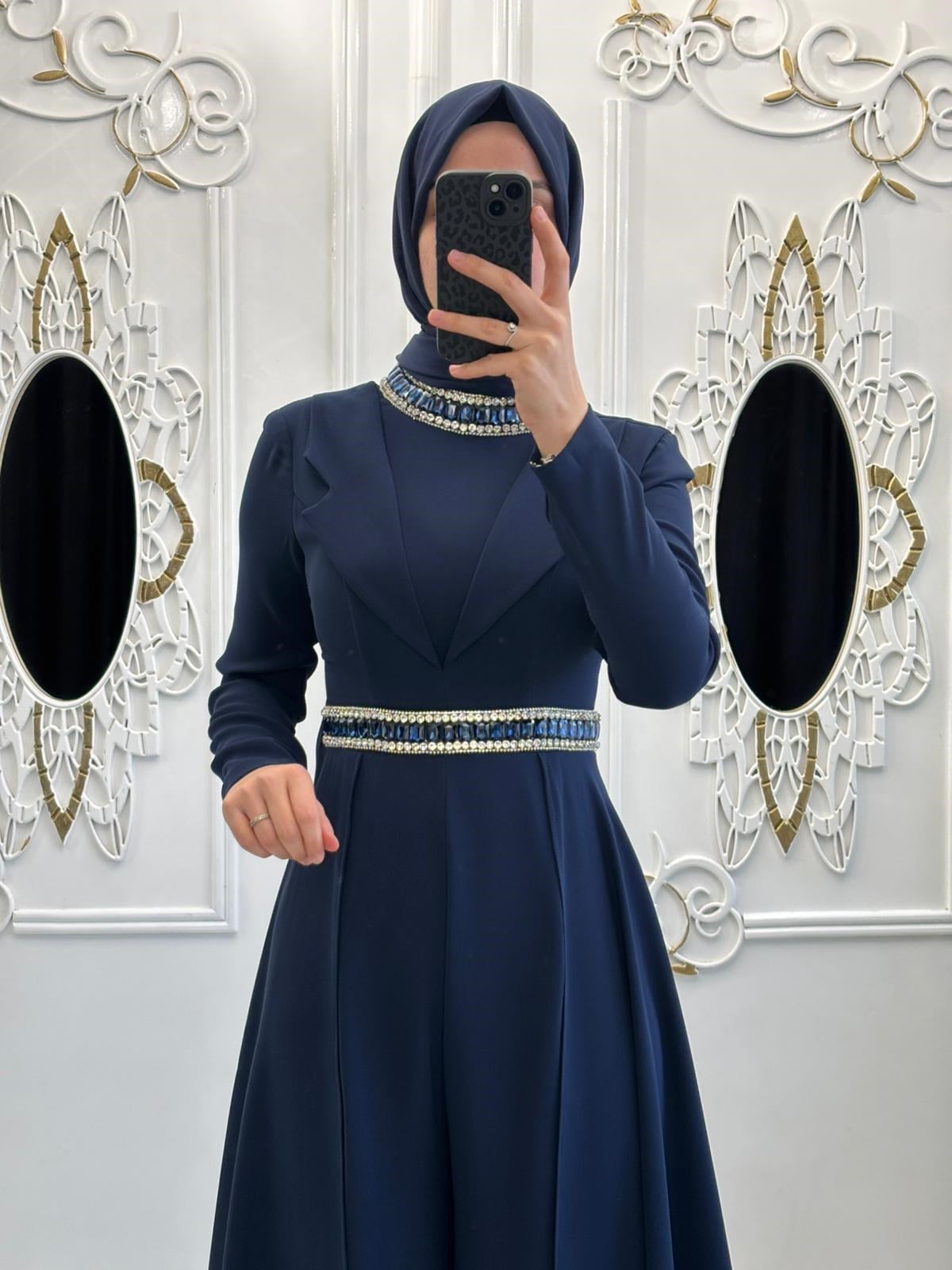 Tesetturhome.com'un yaka ve bel kısmında taş işlemeli krep kumaştan oluşan tulum modeli, şıklık ve zarafeti bir arada sunuyor. Bu eşsiz tasarım, özel günlerde ve davetlerde kendinizi özel hissetmenizi sağlayacak. Yaka kısmındaki taş işlemeler, tulumun zarif ve şık bir görünüme sahip olmasını sağlarken, bel kısmındaki detaylar da vücudu kusursuz bir şekilde sararak feminen bir siluet oluşturuyor. Krep kumaşın hafif ve rahat yapısı ise tulumu gün boyu konforlu bir şekilde kullanmanızı sağlıyor. Bu tulum modeli, tesetturhome.com'un kaliteli ve şık tasarımları arasında öne çıkıyor. Siz de bu benzersiz tulum modeli ile tarzınızı ve zarafetinizi ön plana çıkarabilirsiniz.