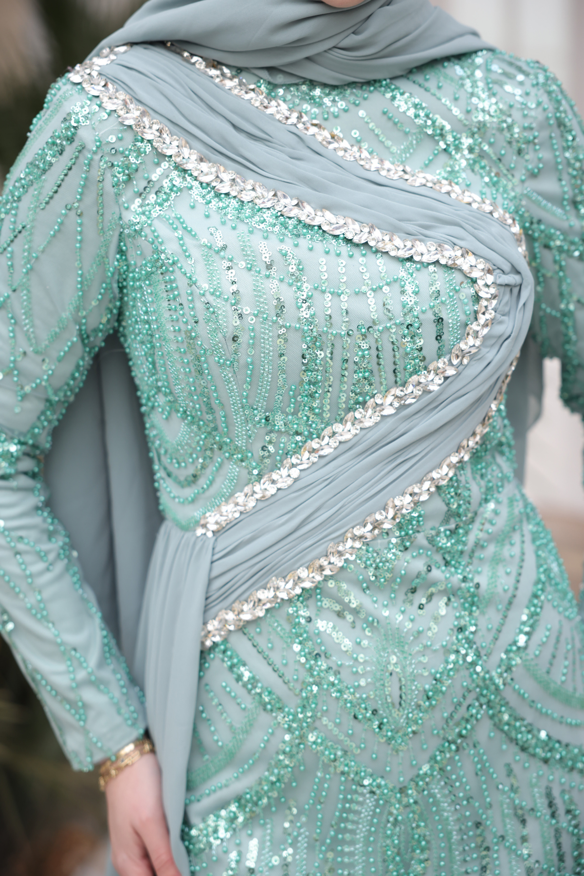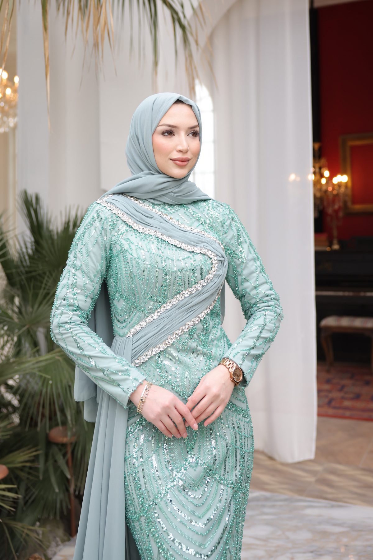• Ürün 1. sınıf şifon & boncuk kumaştır.