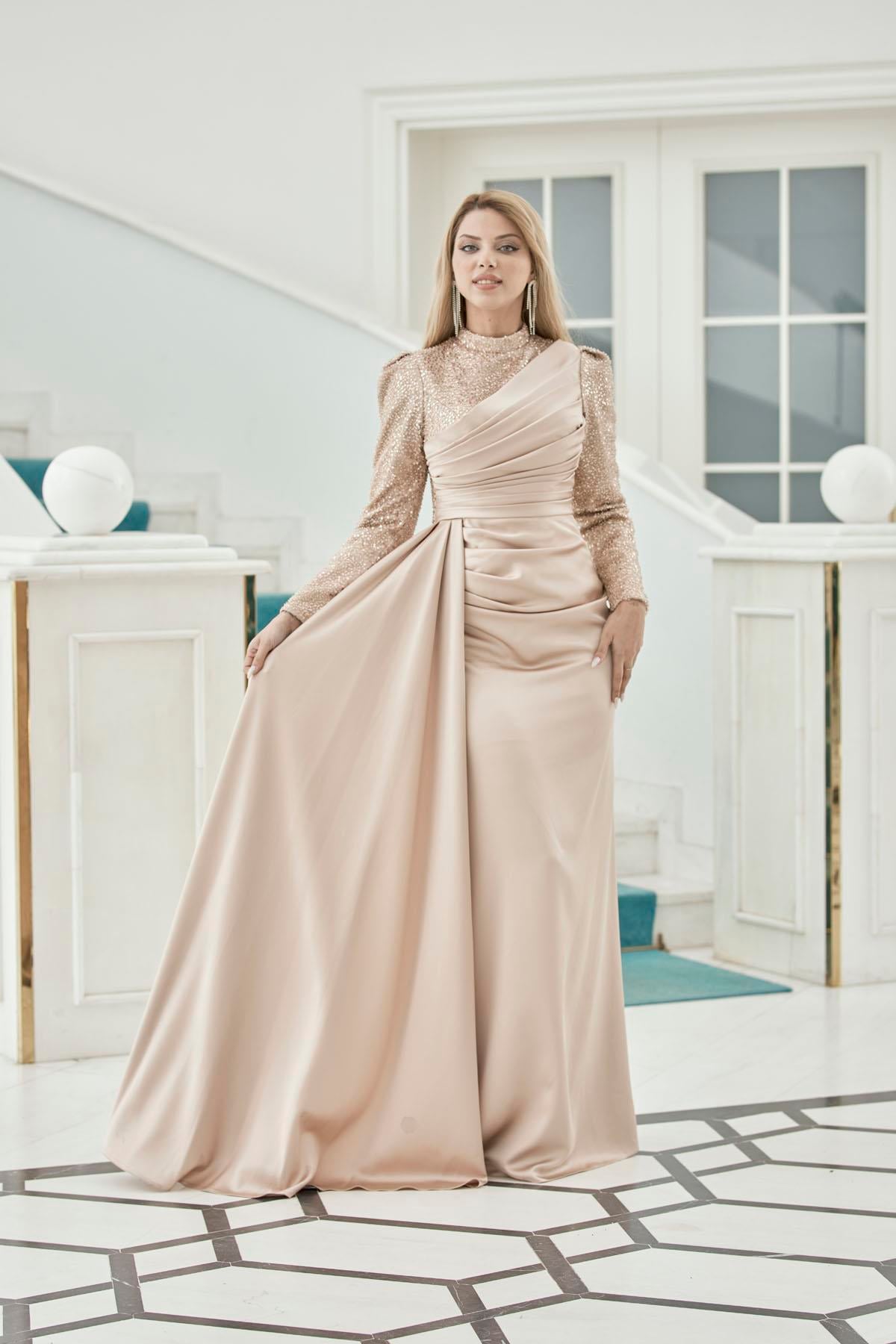 Arkadan fermuarlı, yandan kuyruklu, önü drapeli