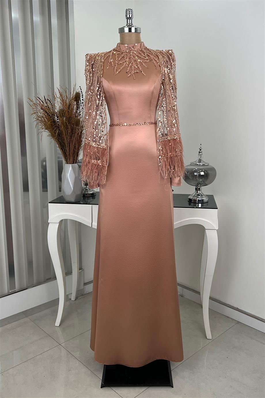 Matmazel El İşlemeli Taşlı Tesettür Abiye