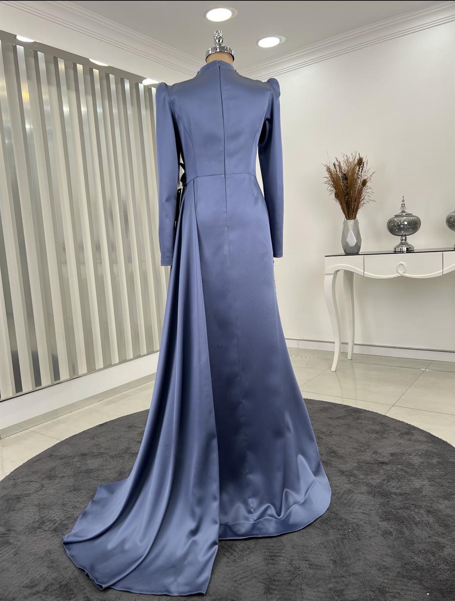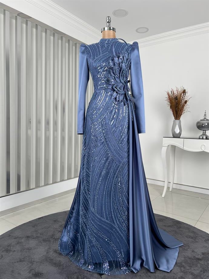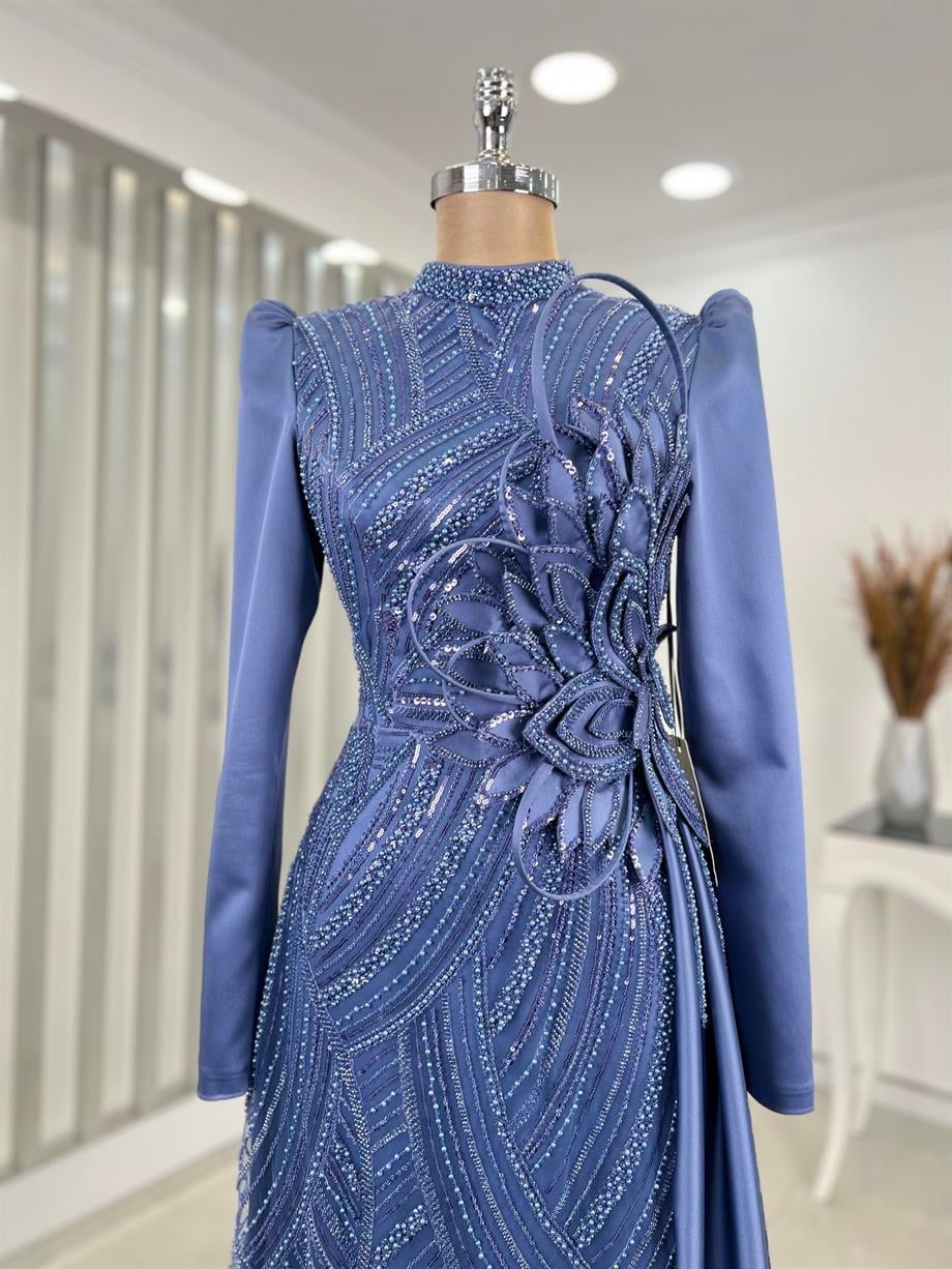 Yaprak Dantelli Beli Çiçek Detaylı Tesettür Abiye